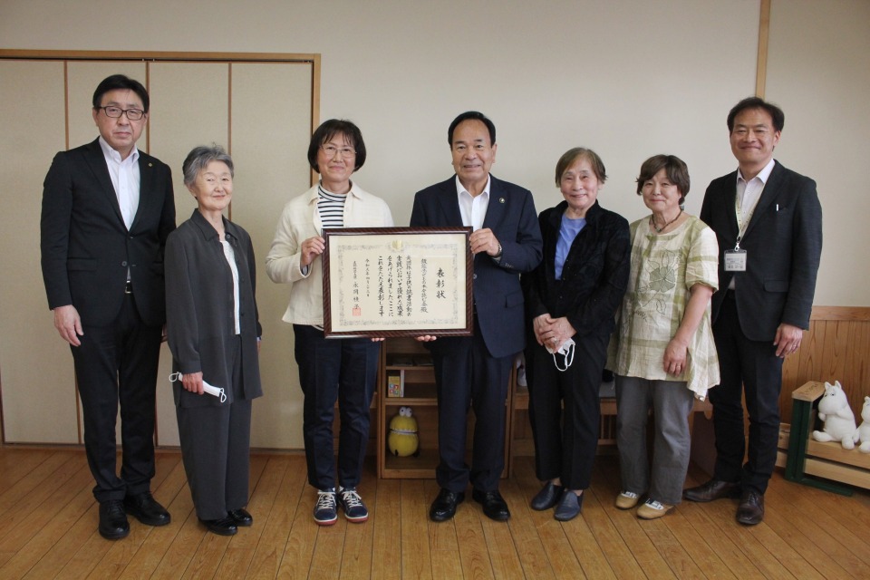 報告を受けた新井市長は「皆さんの読書に対する熱意が子どもたちや市民に広がり、今回の受賞につながったと思う。私も大変嬉しく、長年のご尽力に感謝したい」と称えた。